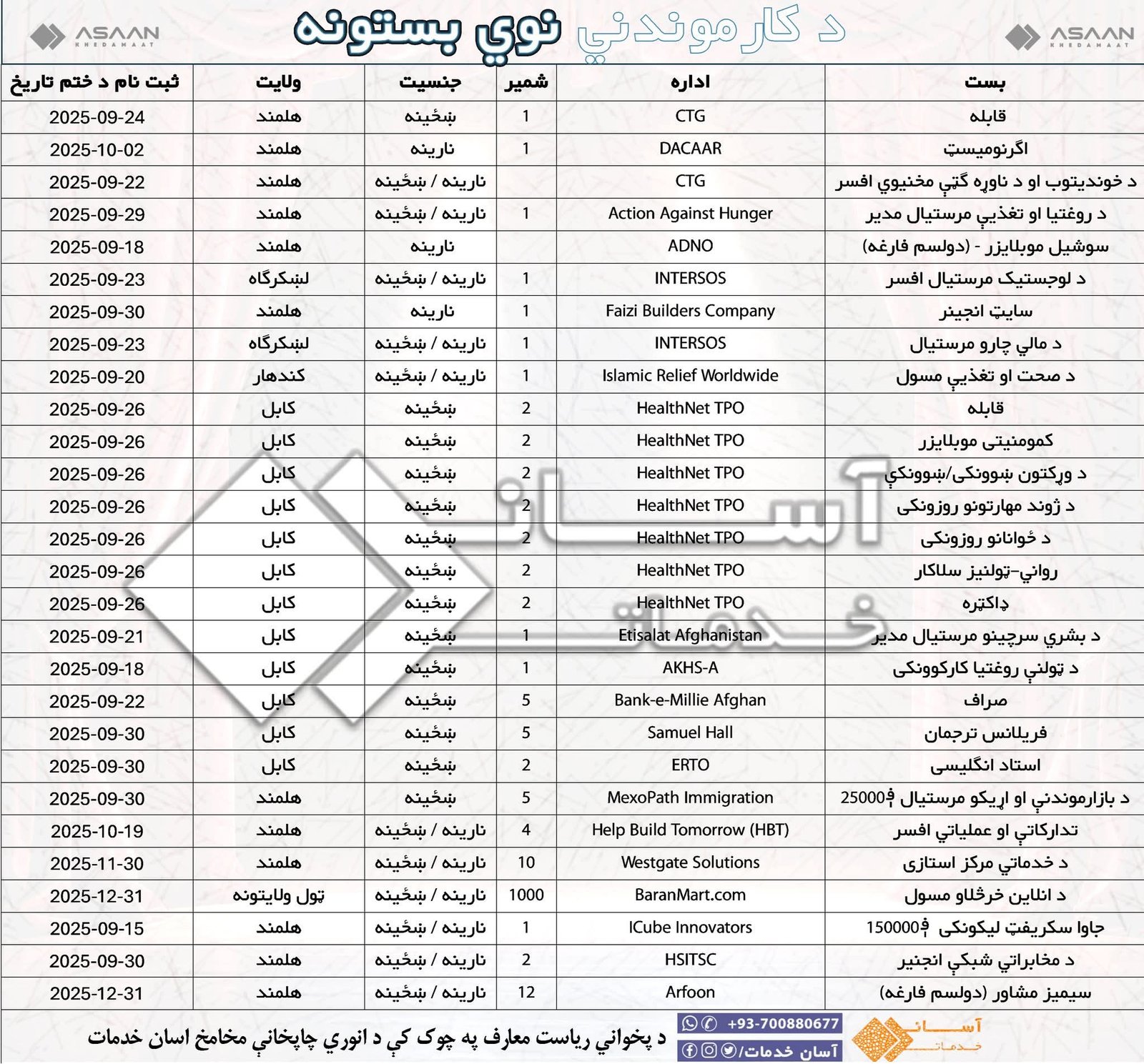 | 4 | Emplyeer list | #کارموندنه ?✨ ? New jobs have been announced in Helmand, Kabul and Kandahar! |